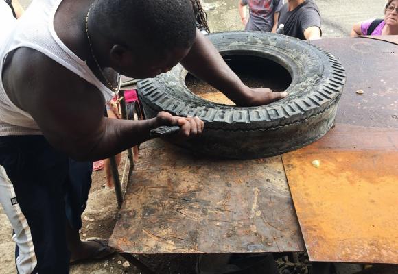 Neben allem anderen auf dieser Mülldeponie gab es auch eine überwältigende Menge an Reifen. Sie waren eine Brutstätte für Moskitos, die tödliche Krankheiten in sich trugen, und sie waren ein giftiger Alptraum.